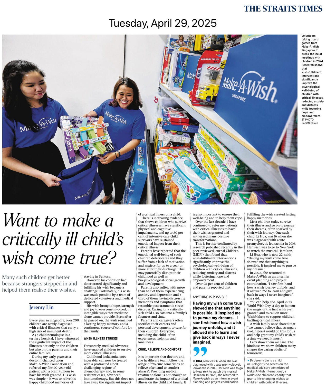 Make-A-Wish changed my life when I was diagnosed with cancer in 2019. My wish of going to see Hamilton on Broadway showed me that there was a world out there for me to explore. This reminder gave me strength to continue with my studies and got me excited for my future.I wanted to give this feeling to my community so I interned at MAW during my time in ITE College East under Events Management.I played many roles during my time at MAW, most notability being able to reach out to my community directly.Job scope:
